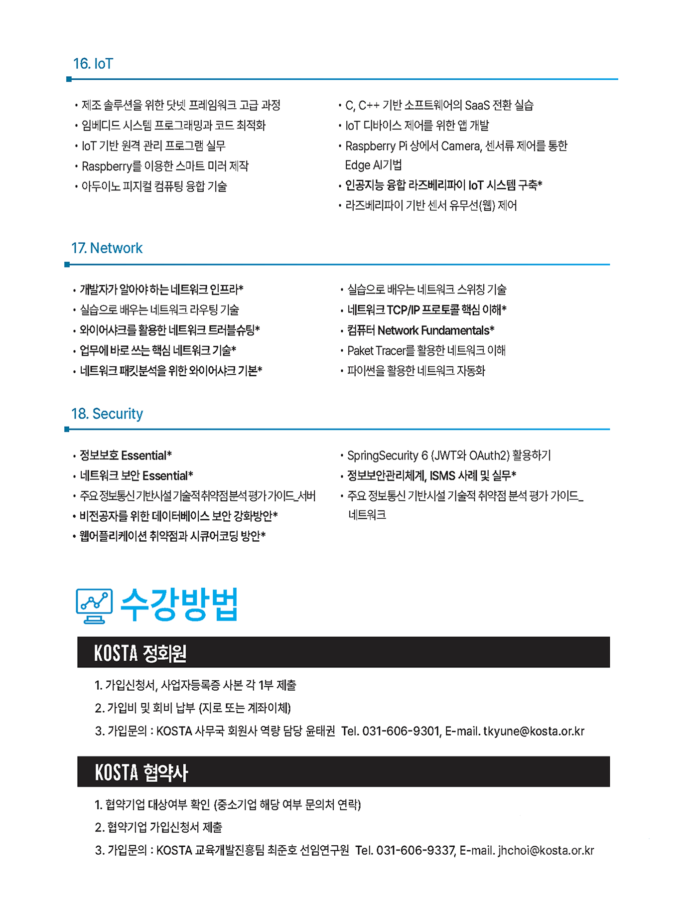 KOSTA는 25년간 1,400여 협약기업과 함께 SW·AI 전문인재를 양성해왔습니다.이제 귀사의 인재 육성도 KOSTA가 함께하겠습니다.기업 맞춤형 직무교육 상담을 신청하고, 미래를 준비하세요.
